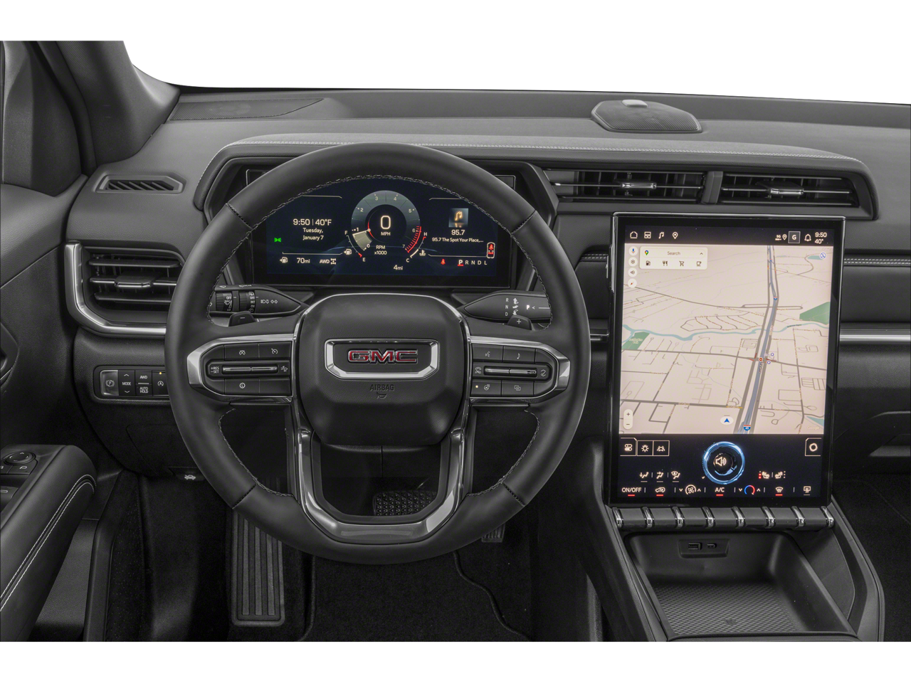- 15" diagonal Premium GMC Infotainment System high contrast display with Google Built-In compatibility including navigation capability, color touch-screen, multi-touch display, connected apps, personalized for each driver's settings, Natural Voice Recognition and Phone Integration for Wireless Apple CarPlay/Wireless Android Auto for compatible phones
